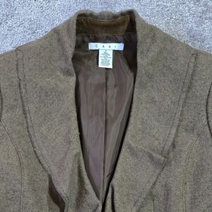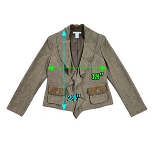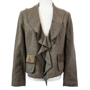 Cabi 361 Kensington Wool Blend Brown Ruffle Collar Blazer Academia Preppy