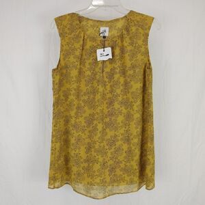 Cabi 3617 Paisley Blouse Yellow Modern Keyhole Top Sleeveless Size Small