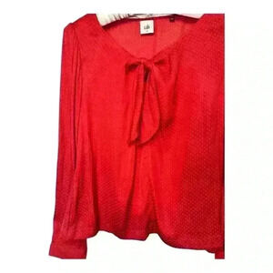 Cabi 3862 | Front Knot Swiss Red Dot Print Satin Blouse Top with Keyhole, Medium. Excellent used condition.