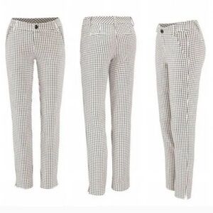 EUC, Cabi windowpane trouser pant - 3203 - so cute! White slim notched ankle pants with some stretch and an all over black windowpane / grid pattern. Button and zip closure, front and back pockets! An easy, comfortable way to add fun to your work wardrobe!