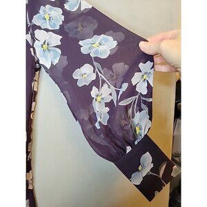 Cabi 4018 Womens Ellery Dress Sz Small Purple Blue Floral V-Neck Long Sleeve