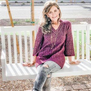 Cabi Deep-Purple Chime Cable-Knit V-Neck 3/4-Sleeve Pullover Sweater - Style #4066. So cozy! The perfect versatile wardrobe staple. Great for office wear, everyday wear, etc. Excellent condition, worn once Approx Flat Measurements: Length 28 1/2” Bust 18”