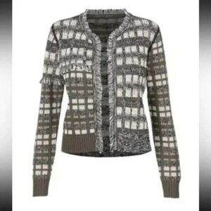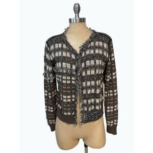 Cabi #4097 Classic Cardigan Open Front Fringe Stripe Brown Medium