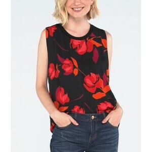 Cabi 4552 Complete Top Shine Black Red Flower Print Sleeveless Oversized Blouse