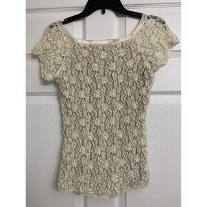 Cabi # 503 Empire Waist Feminine Baby Doll Lace Scoop Neck Top Size M