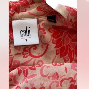 Cabi 5037 Small Vita Pink & Tan Floral Printed Sheer Drape Neck Tank Top Blouse