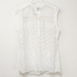 Cabi 5201 Prudence Tank Top Lace Sheer Sleeveless Blouse White Size Medium