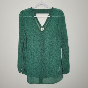 Cabi #5208 Bontiful Patterned Blouse Green Semi-sheer Cute Size Medium
