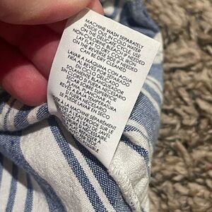 Cabi 5343 Wing Top linen blue white stripe blouse