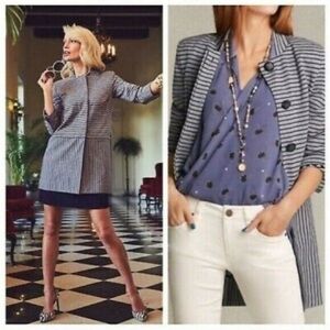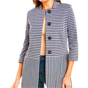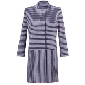 Cabi 5474 Striped Car Coat Purple Navy Gray Long Lightweight 3/4 Sleeve