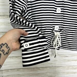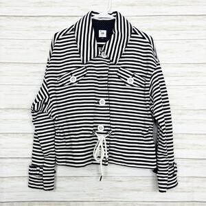 Cabi #5654 blue and white striped button front harbor jacket in size S.