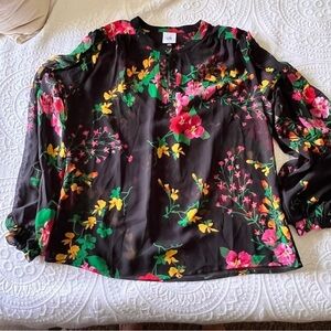 Cabi 5706 Thespian Blouse Floral Sheer Ruffles romantic SIZE SMALL