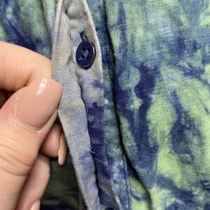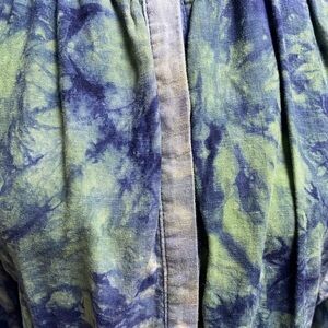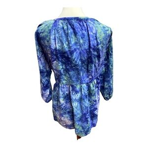 Like new! Blue green babydoll “Woodstock” blouse! Hidden buttons down the front, elasticized cuffs.