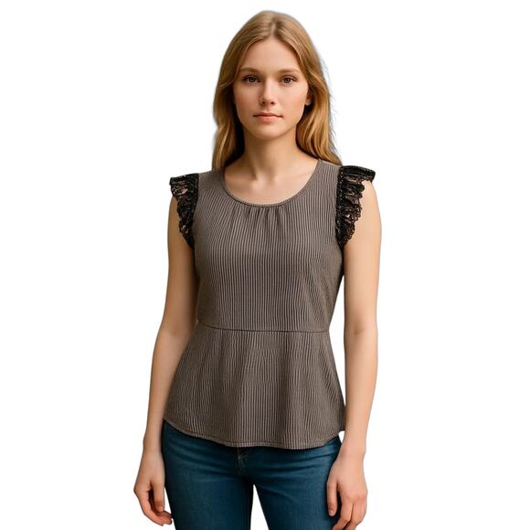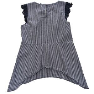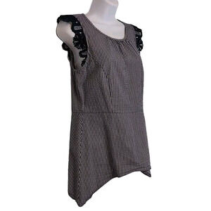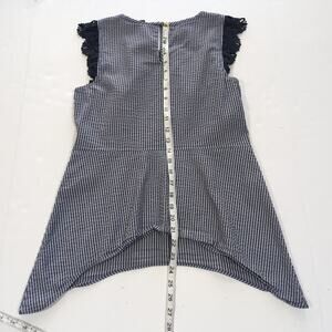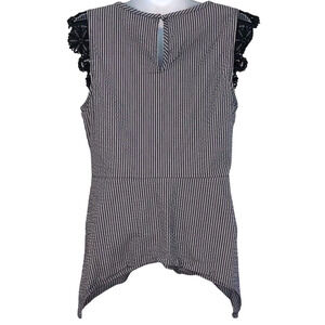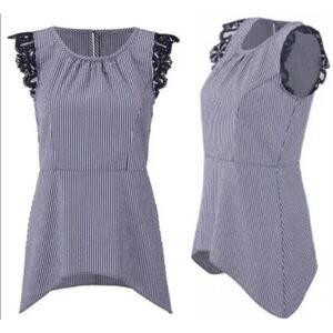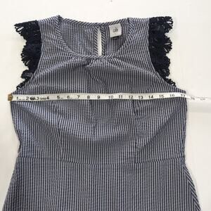 Cabi #5727 Top Blouse Women's Size S Small Navy White Seersucker Lace Cap Sleeve