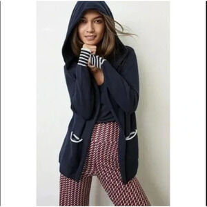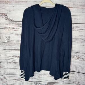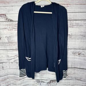 Cabi Women’s Medium Navy Blue Open Front Hooded Cardigan Sweater Style 5780 Striped Cuffs