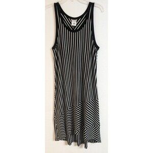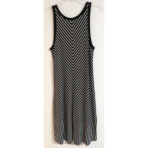 Cabi #5946 Black/White Mixed Stripe "ATC Wink Dress" Sleeveless Knee Length SZ M