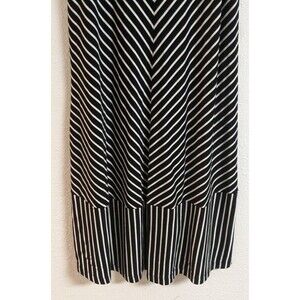 This beautiful Cabi "ATC Wink Dress" is sure to turn heads with its stunning black and white mixed stripe pattern. The dress features a scoop neckline, pullover closure, and sleeveless design, making it perfect for any occasion, whether it be a casual day out or a party. The knee-length dress is made with a lightweight and stretchy rayon/spandex material, ensuring a comfortable and flattering fit for any body type.