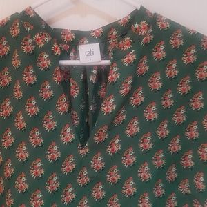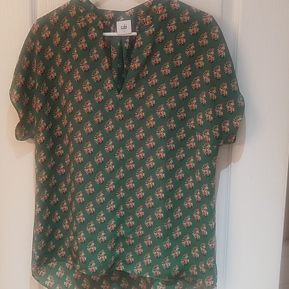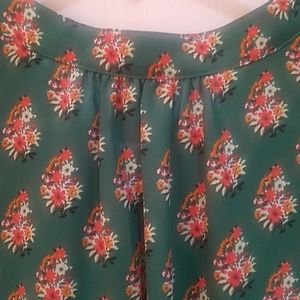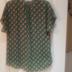 Adorable green floral cap sleeve blouse. Back detail is too cute