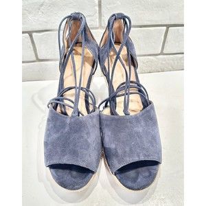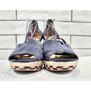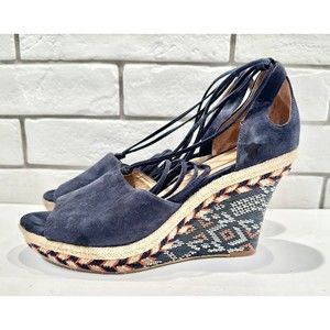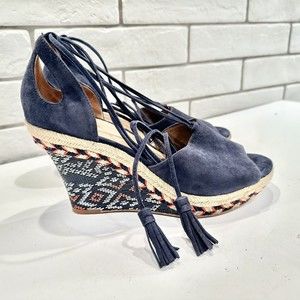 Cabi 6001 Isla Blue Suede Aztec Espadrille Wedge Heel Sz 6.5 Excellent Preowned Condition