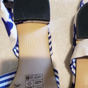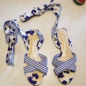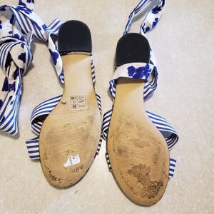 Cabi #6013 Watercolor Tied Up Sandals Shoes Blue White Stripe Floral Size 8