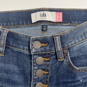 Cabi #6068 Button Fly Straight Leg Jeans Distressed Stretch Size 0 in great condition