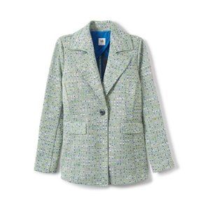 Now presenting the Presentation Blazer: This tweed blazer has a classic lapel design with a single button closure and welt pockets with flaps at the hips, all crafted in a pastel palette to give your work wear a little springtime refresh. First impressions matter, and this blazer gets the job done right.