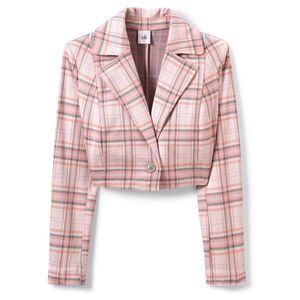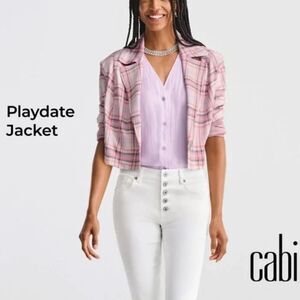 Cabi #6257 PLAYDATE Pink Plaid Button Front Cropped Jacket