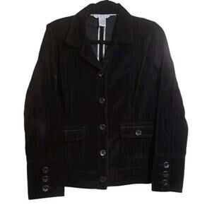 Cabi 649 Woman's Black Velvet Velour Button Down Jacket Size Large Pockets Long Sleeve
