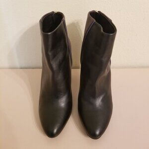 Cabi 8 BISSET Booties Two Tone Chunky Heels Plum Black Leather Boots Colorblock