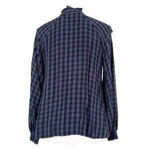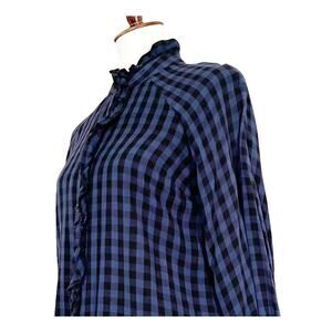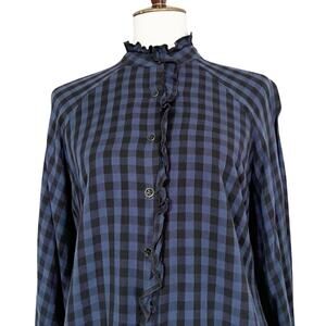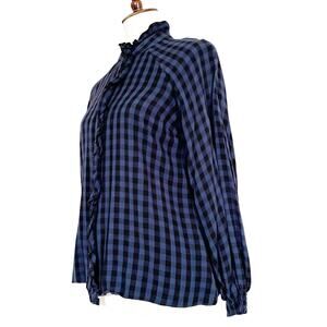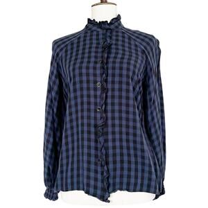 Cabi Aberdeen Blue Plaid Ruffle Button Front Blouse Top Size Small