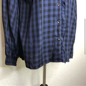 Cabi Aberdeen blue black plaid ruffle trim button down top Extra Small XS #3961