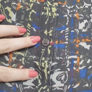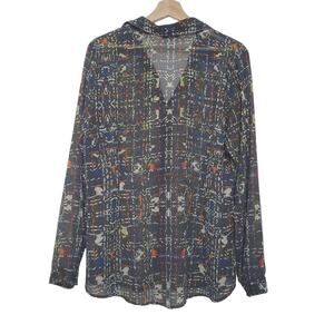 Cabi | Abstract Pattern Sheer Lightweight Button Up Long Sleeve Blouse Top