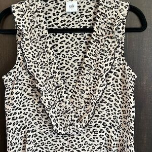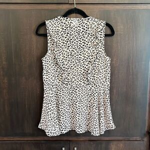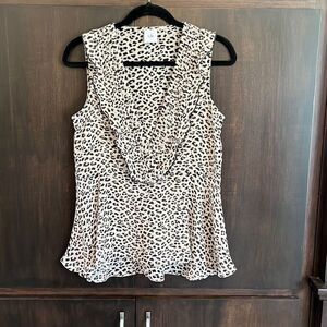 This top is made by Cabi. It’s a sleeveless leopard print with a deep ruffle v-neck. Size small and in very nice pre owned condition. Smoke and pet free home.
