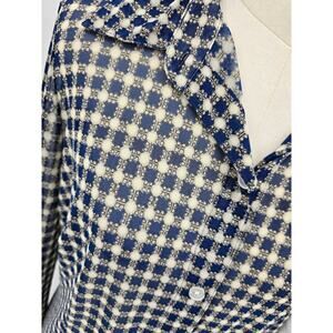 Cabi Art to Wear Button Up Sheer Navy & Cream Geometric Minimalist