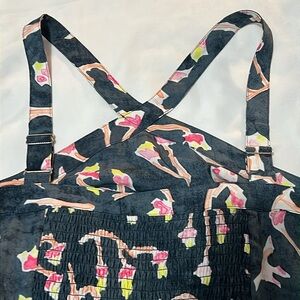 Measurements: Chest armpit to armpit 34” Length 56” shoulder to hem with straps not adjusted.