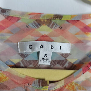 Cabi Avery Tunic Top Size S Crew Neck Sleeveless Geo Aztec Print Pink Yellow