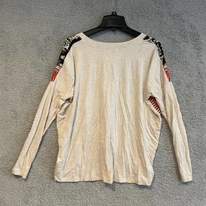 Cabi Aztec Print Silk Front Long Sleeve Top Oatmeal 768 - XS