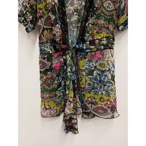 Cabi BOHO Y2K Kimono Womens Small Floral Chiffon Sheer Short Sleeve Tie Top #543