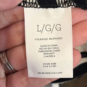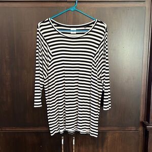 This top is made by Cabi. It’s a black and white striped soft knit with 3/4 length sleeves. Size large and in very nice pre owned condition. Smoke and pet free home.