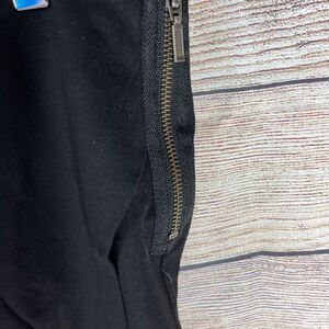 This measures 15" laid flat at waist, 21" at asymmetrical hemline. Size Zip detailing. In very good pre-owned condition. Normal wear and tear noted, but no flaws or damage. Please review pictures and feel free to ask any questions or for more pictures prior to purchasing.