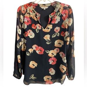 Cabi Black Blouse Poppy Floral Popover Navy Medium