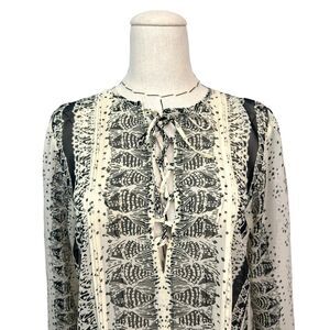 Cabi Black Cream #867 3/4 Sleeve Beatnick Sheer Lace-Up Tunic Top Size XS
