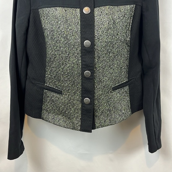 Cabi Black Green Metallic Tweed Textured Panel Jacket Size M