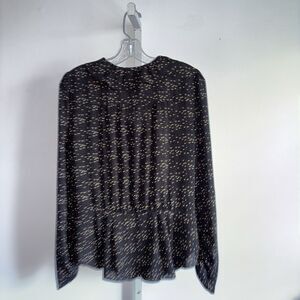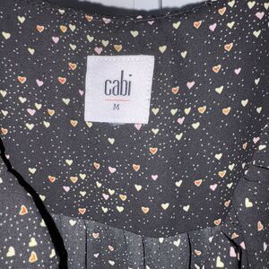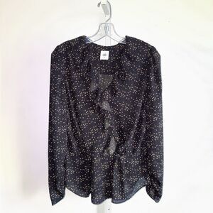 Cabi Black Heart Blouse Size Medium Ruffle V-Neckline Long Sleeves #4154