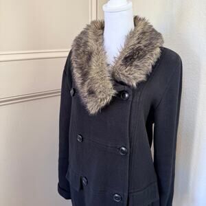 Cabi Black Heavy Knit Sweater Jacket w/ Removable Faux Fur Collar β Size Small
