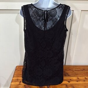 Gorgeous tank in excellent condition! Solid base, lace top. Ties at neck Loose and flowy. Approx 21" from pit to pit, 28" in length. Smoke free home.