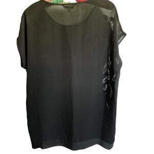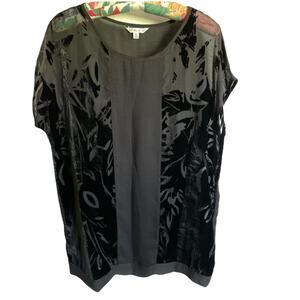 Cabi sleeveless Black Burnout Velvet Blouse Tunic. Think holiday wear, sophisticated at a price that is affordable. Dress up or down Velvet front burn-out. Sheer back. Mock cap sleeves.