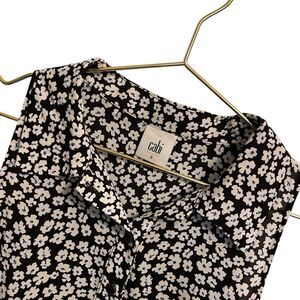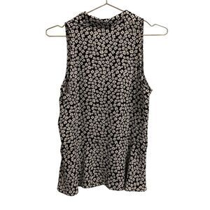 Cabi Black White Daisy Befriend Collared Peplum Tank Top Size Small