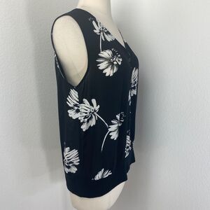 Cabi Black White Floral Chiffon Tank Top Small Button Front Resort Travel Boho