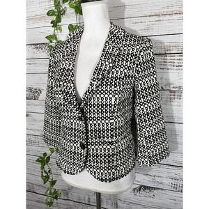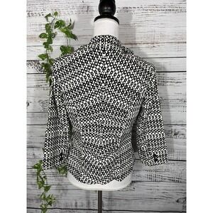 Cabi Blazer Jacket size 4 Black Ivory Circles Stretch Career Casual Collar Boho
